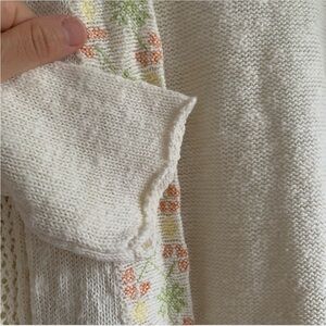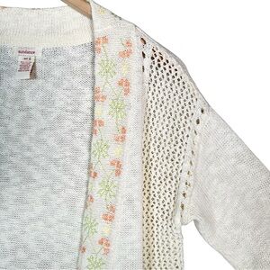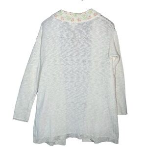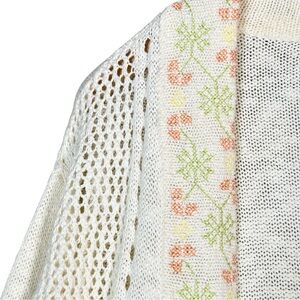 SUNDANCE Embroidered Lattice Lace Open Front Cotton/Linen Blend Duster Cardigan