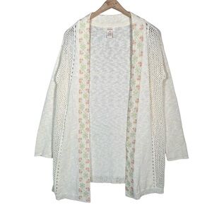 EUC women’s size XS SUNDANCE Lattice Lace Open Front Cotton/Linen Blend Duster Cardigan