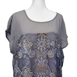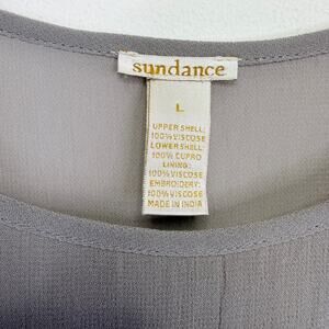 SUNDANCE Floral Embroidered Sheer Overlay Cocktail Dress L Gray Bohemian Luxe