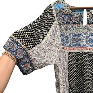 SUNDANCE Floral Patchwork Print Pullover Casual Dress Sz XL Hi Low Hem Bohemian