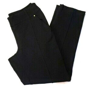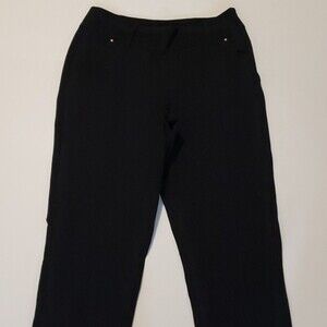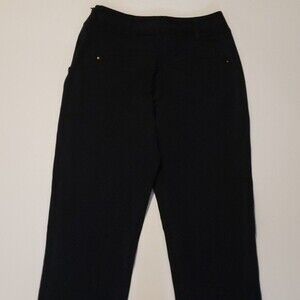 Pre-owned black Sundance career dress cropped pants size 4 petite. Zip and button closure with exposed seam detail down front.