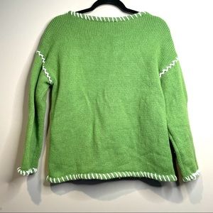 SUNDANCE Green & White Lambswool Blend Boxy Pullover Sweater - Sz Small