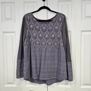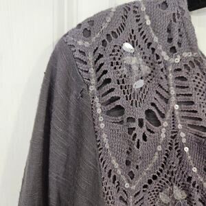 SUNDANCE | Grey & Lavender Embroidered Sequin Hi/Lo Tunic Top Large