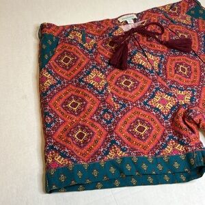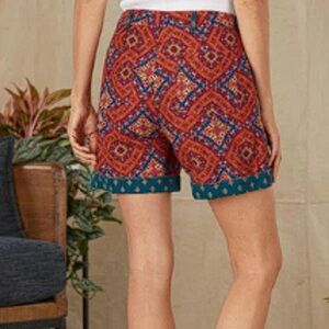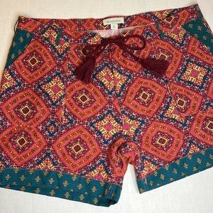 Gorgeous, vibrant colors, floral. Sundance brand. Cotton linen blend shorts two front pockets, and two back pockets cuffed hem. Front zip with button and tassel tie. Size extra large new like condition.