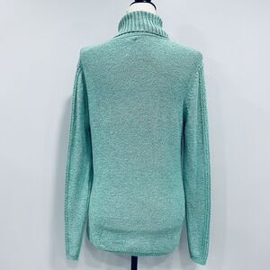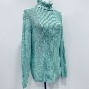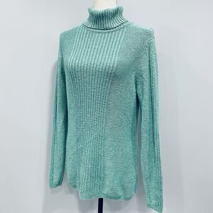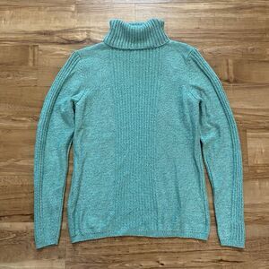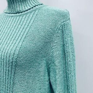 SUNDANCE L Turquoise Toasty Tweed Rib Knit Turtleneck Sweater Soft Cozy Winter