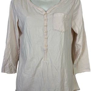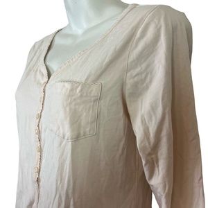 SUNDANCE Light Blush Pink V-Neck Henley 3/4 Long Sleeve Tee T Shirt Top Knit S