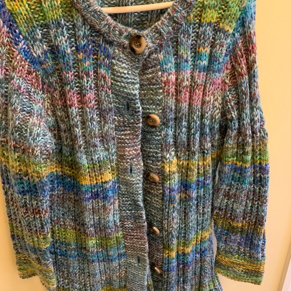 SUNDANCE PINEBROOK CARDIGAN SPACE DYED KNIT WOOL BLEND SIZE LARGE