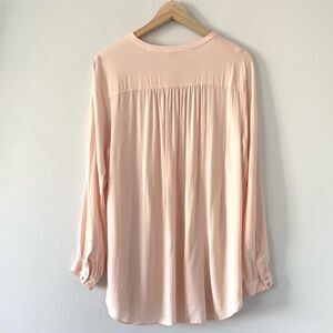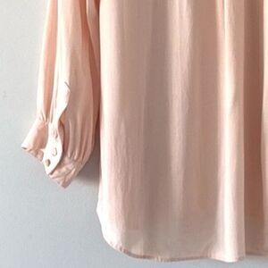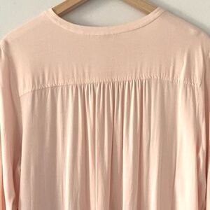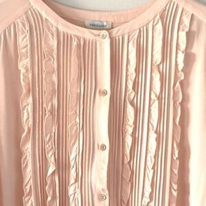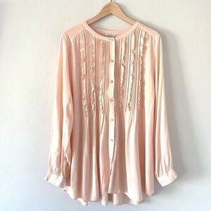 SUNDANCE Powder Pink Vineyard Ruffle Long Sleeve Button Round Neck Shirt sz XL
