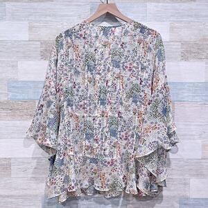 SUNDANCE Sheer Floral Pinkuck Blouse Flutter Dolman Sleeveless Boho Womens Large