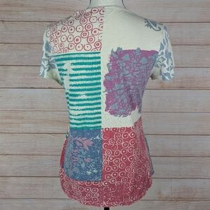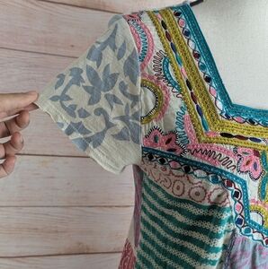 SUNDANCE Size XS Embroidered Bohemian Blouse Oversized Saphan Patchwork Cotton Top Multi Color