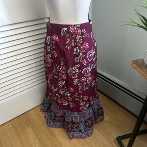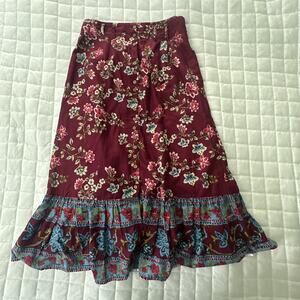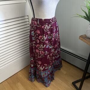 SUNDANCE Skirt Womens XS Burgundy Floral Take Me Along Tiered Midi Boho Chic