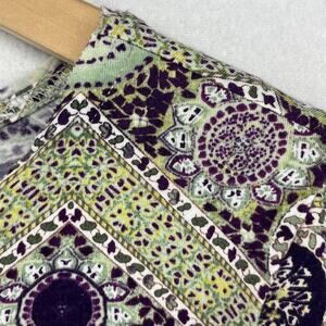 SUNDANCE Top S Boho Medallion Embroidered Cuffed Knit Trim Cotton Modal Purple