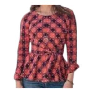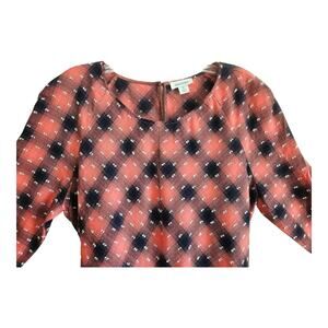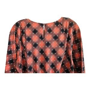 SUNDANCE Women M Blouse Bias Check Black Salmon Swiss Dot Peplum Cotton 40"