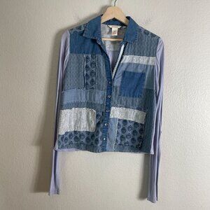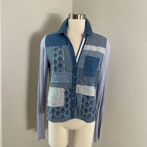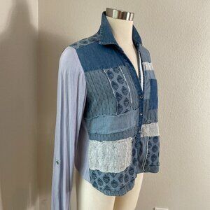 SUNDANCE Womens Medium Patchwork Denim Button Up Shirt Roll Tab Sleeve Top