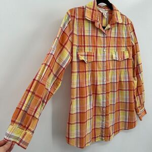 SUNDANCE Women's Orange Yellow Plaid 100% Cotton Button Up Shirt Size Small