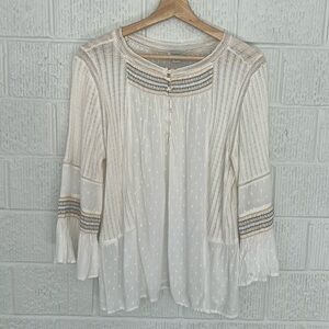 SUNDANCE Women’s Peasant Blouse with Bell Sleeves Embroidered Size Large