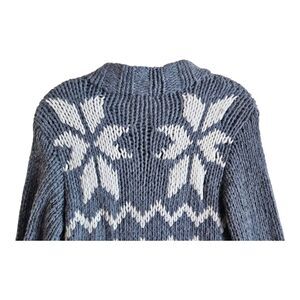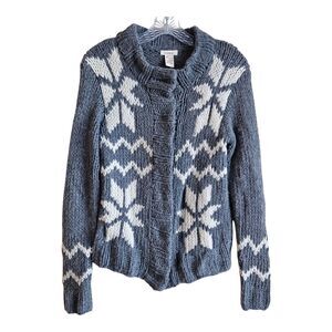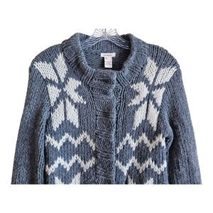 SUNDANCE Women's Size S Cardigan Sweater - Nordic, Gray, Off White, Large Hidden Snaps, Chunky Knit, 70% Lambswool, 30% Nylon