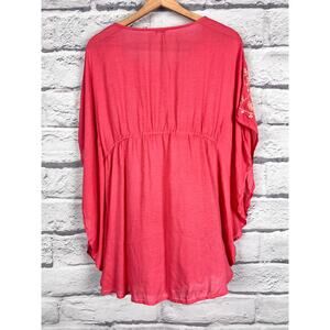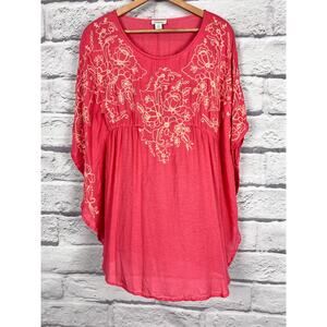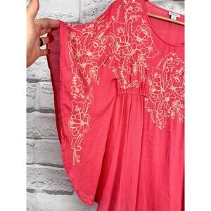 SUNDANCE Women's XS Pink 100% Modal Floral Embroidered Kaftan Poncho Boho Top
