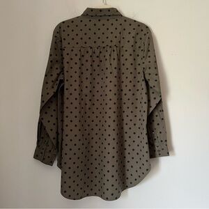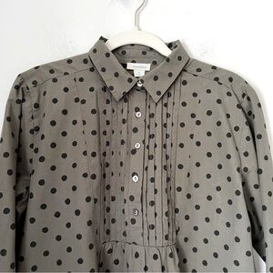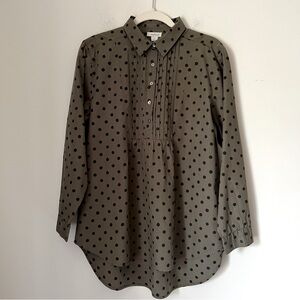 SUNDANCE Woven Lively Days Tunic Shirt Khaki Polka Dot Pintuck Popover Shirt M