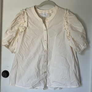 SUNDAYS manuella shirt ivory puff sleeve button down boho medium. No size tag.