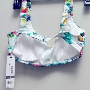 SUNDAZED Bella Printed Shirred-Strap Bikini Top, swimsuit bra Size S