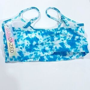 SUNDAZED Gianna Tie-Dyed Mid-Line Bikini Top, swimsuit swimwear size M New teal