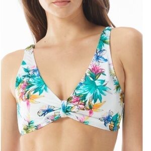 SUNDAZED Harper Printed Tie Bikini Top, swimwear, swimming suit multi, New 34DD