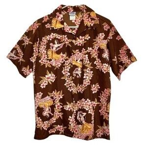 SUNDEK Sexy Hula Girls Surfing Shirt Brown Red Gold Mens Medium