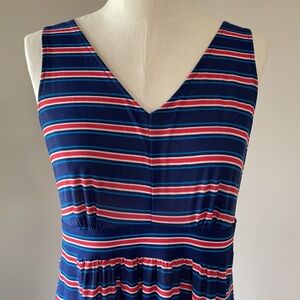 SUNDRESS, LONG V FRONT AND BACK SLEEVELESS. STRETCHY, lightweight Size L stripes