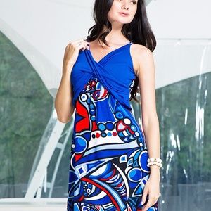 This gorgeous sundress from EUROPEAN DESIGNER Collection made of high quality Italian stretch soft natural viscose fabric in beautiful cut.VERY COOL IN HOT SUMMER DAY!EXCEPTIONAL FIT FOR THE FEMALE FIGURE.