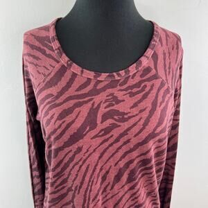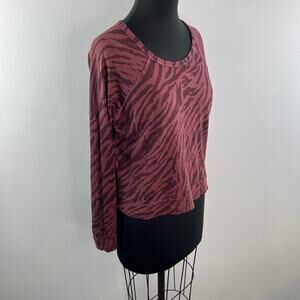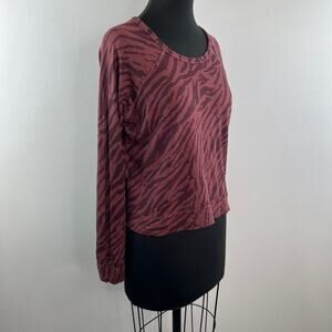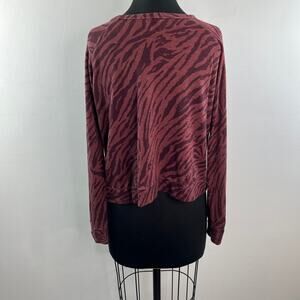 SUNDRY Burgundy Zebra Print Long Sleeve Cropped Sweatshirt Round Neck Top Sz 1