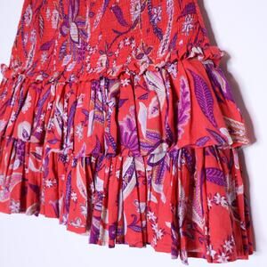 SUNDRY Floral Tiered Skirt Red Smocked Ruffle Lightweight Women's 1 / US S