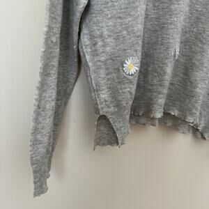SUNDRY Gray Cashmere Wool Blend Crewneck Sweater with Embroidered Daisies