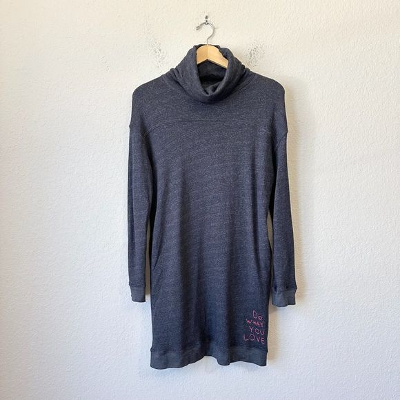SUNDRY L/S Embroidered Turtleneck Sweatshirt Dress in Charcoal Grey Sz 2 W7704