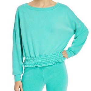 SUNDRY Let's Find Smocked-hem Sweatshirt Pigment Turquoise Sweater Sz M