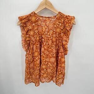 SUNDRY NWT Evereve Sienna Rust Floral Flutter Sleeve Blouse // Small