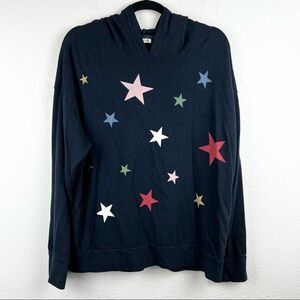 SUNDRY Navy Blue Hoodie with Multicolored Star Print Graphic, Size 3 (Large)