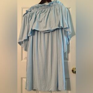 SUNDRY Off Shoulder Cotton Stretch Maxi Sky Blue 2 Medium Tiered Ruffle MADE USA