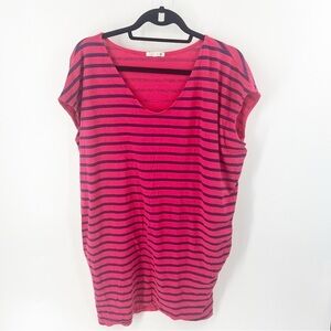 ✅ SUNDRY RED/BLUE STRIPED V-NECK TUNIC DRESS WITH POCKETS SIZE 2 (8/10)