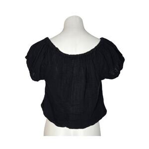SUNDRY Short Sleeve Peasant Blouse Black Size Small