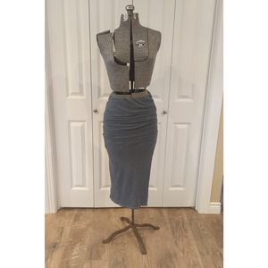 SUNDRY® Side Slit Skirt. Gray/Grey. Size 1 (small). 95% cotton/5% spandex