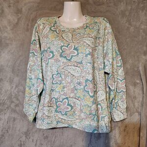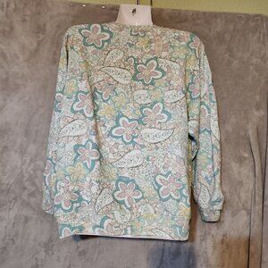 A delightful canvas of swirling paisleys and florals, this sweatshirt invites you to experience comfort in style. Its 3/4 sleeves and relaxed fit make it a versatile addition to any wardrobe, perfect for those days when you crave a touch of whimsy in your attire.