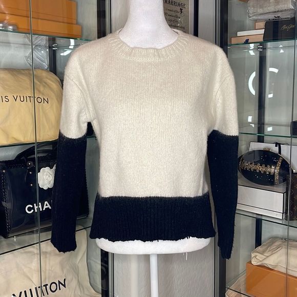SUNDRY | Crew Neck Color Block Sweater in White and Gray.