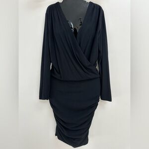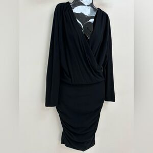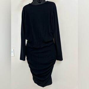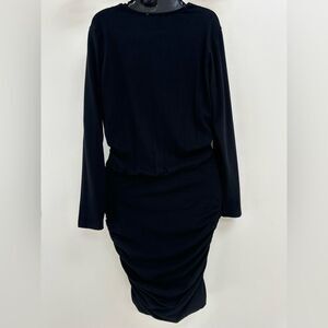 SUNDRY RUCHED LONG SLEEVE T-SHIRT DRESS BLACK 2=M