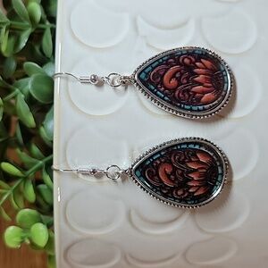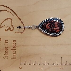 The look of handtooled leather under glass with vintage style silver frame and stamped .925 sterling silver wires.