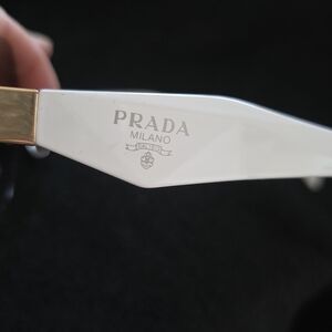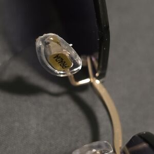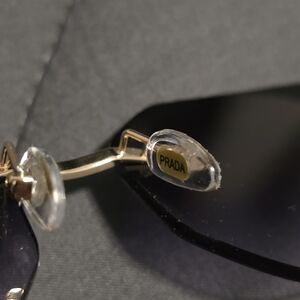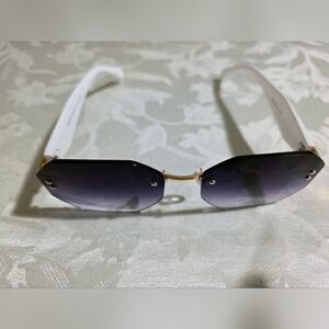Stylish white-frame rimless sunglasses with gradient black lenses. Lightweight design with gold bridge detail for a polished look. Ideal for everyday wear and sun protection.