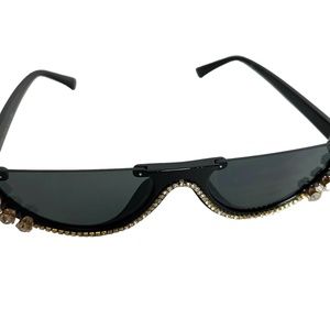 SUNGLASSES SUN GLASSES Shades Rhinestones Cat Eye Plastic Frames Bling Black