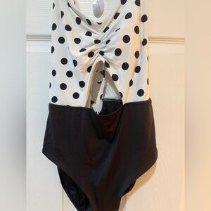 SUNN LAB SWIM one-piece swimsuit black white polka dots