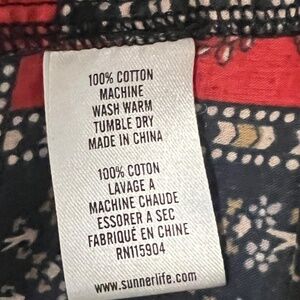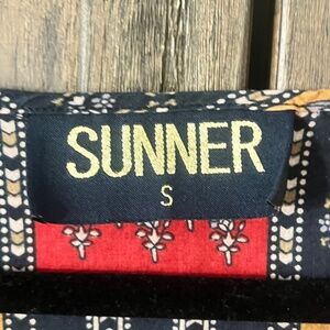 SUNNER Boho Patchwork Cotton Top Gold/Red/Black 3/4 Length Sleeve Size Small