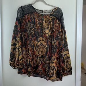 SUNNY LEIGH PLUS PLEATED TOP WITH LACE SHOULDER, Burgundy,2x,NWT